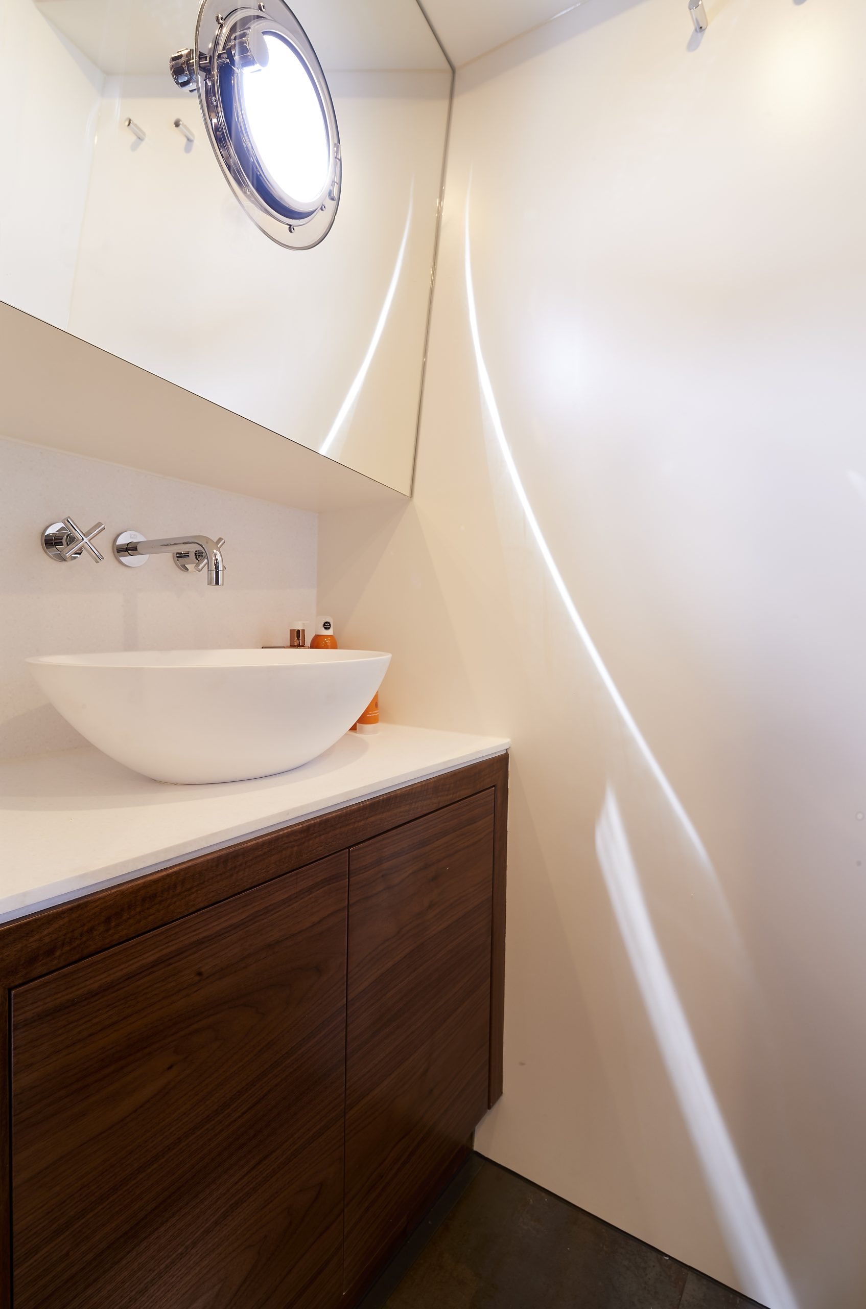 The galley of the 1500 Mk2 comes with a modern induction cooker, exhaust hood, dishwasher, refrigerator/freezer and lots of working surface.