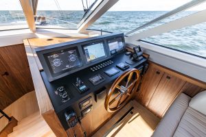 All Van den Hoven interiors are renowned for their smart layouts and space, and this level of comfort is certainly present on the 1700 Mk2. A natural flow between the galley, helm, saloon and dining area facilitates socialising and a seamless use of space. The aft deck invites guests to enjoy a drink or al fresco dining prepared in the modern galley, while the owners can showcase their skills behind the wheel. Clients who prefer more space outside to enjoy their surroundings can add a flybridge to the design.