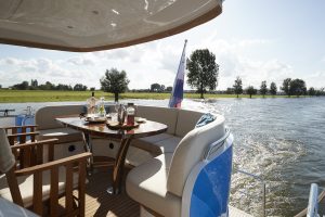 The Executive 1850 leverages all the benefits and experience of its sister’s vessels in the Van den Hoven fleet and goes a step further. A striking example is the capacity to close off the entire aft deck using a practical yet luxurious awning set-up so that it can be used when the weather is less pleasant.