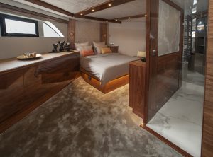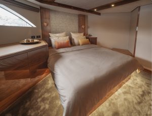 Omdat er veelvuldig van deze 2100 gebruik gemaakt wordt stonden ruimte en comfort centraal in de ontwerpfase. Bijzonder aan deze 2100 is dat er maar één (zeer ruime) slaapkamer is met een ruime inloopkast. En natuurlijk met een uitgebreide badkamer. Omdat de trips lang zijn wordt de ruimte voorin het schip benut als berging. Als er later behoefte aan is kan deze ruimte omgebouwd worden tot een tweede slaapkamer.