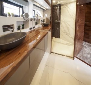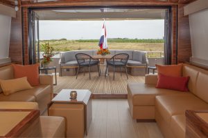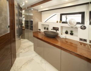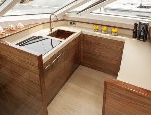 De keuken en de stuurstand zijn beide bijzonder compleet en bevinden zich voorin het jacht. Zo is alles gelijkvloers waardoor de iedereen met elkaar in contact kan blijven.