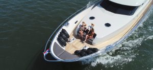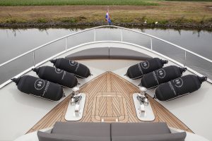 Op het jacht merk je direct dat er veel bewegingsvrijheid is meegenomen in het ontwerp. Je kan comfortabel rondom buitenom lopen. De gangboorden zijn lekker breed en op het voordek is bij wijze van spreken ruimte genoeg voor een feestje. Ook is daar een comfortabele bank geplaatst om ongestoord van het uitzicht te genieten met een heerlijk glas in de hand. Het achterdek heeft en comfortabele halfronde bank voor vijf personen en biedt goed zicht naar opzij en naar achteren. Dineren uit de zon wordt mogelijk gemaakt door het ver naar achteren lopende dak.